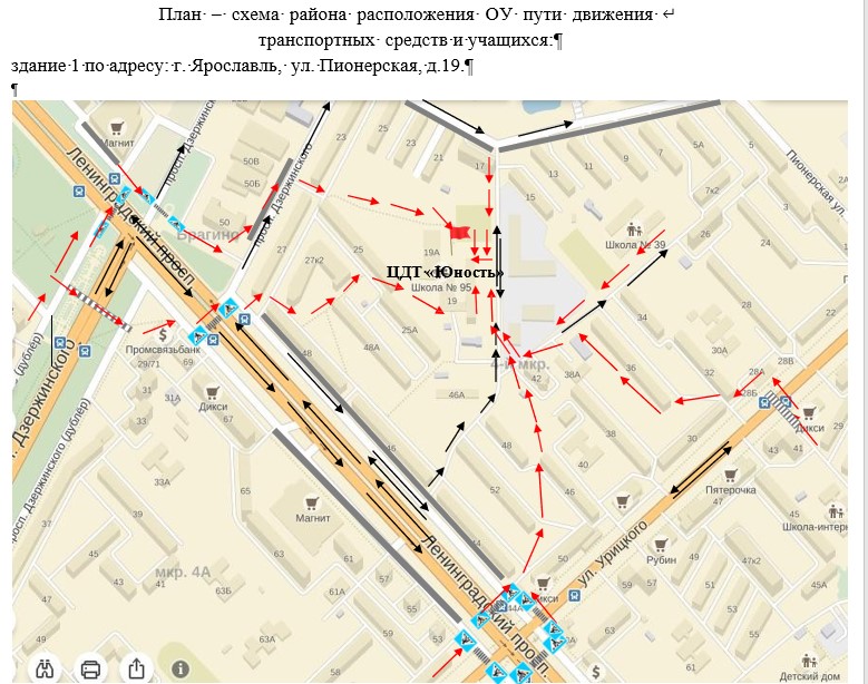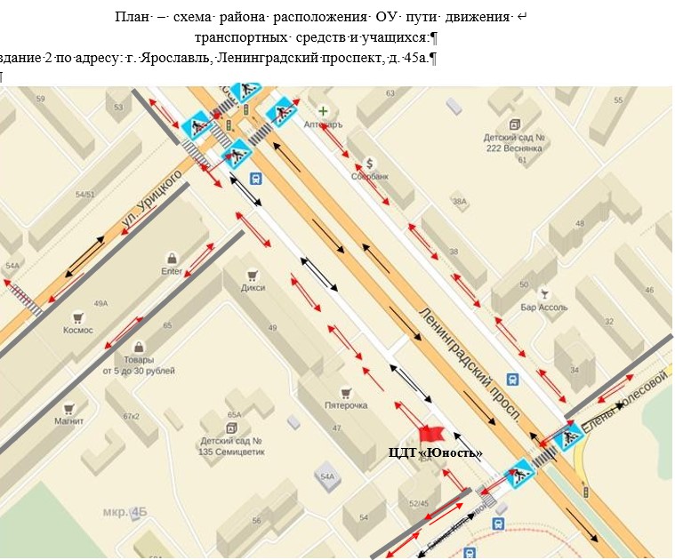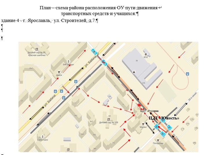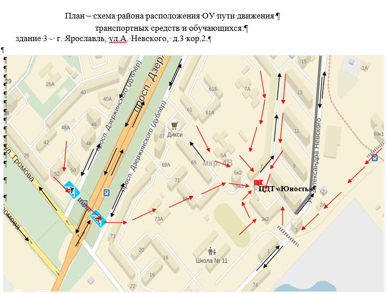 План-схема безопасного маршрута в образовательную организацию структурного подразделения "Ярославич":